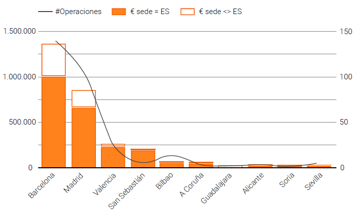 Barcelona, con 1.374 millones de euros captados en 140 operaciones, se mantiene como la ciudad española con mayor número de operaciones y volumen de inversión captado.