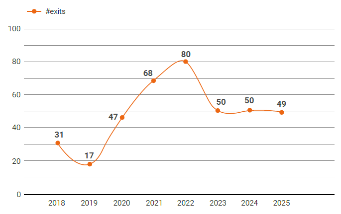 En 2025 se han registrado 49 operaciones de exit, frente a las 50 del año anterior.